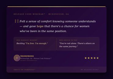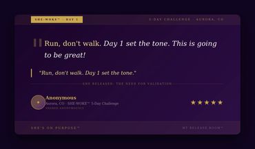 Dr. Dashia is a Purpose Ambassador, trauma-informed educator, and founder of She's On Purpose™ and My Release Room™. She moved through 72 foster homes, survived cancer, and spent over 20 years watching women carry everything for everyone, and slowly disappear.